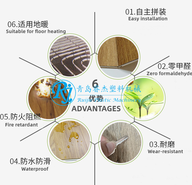 磨粉機,混料機,破碎機,錐形雙螺桿擠出機,地板模具,五輥定型,同步對花,托架,風冷裝置,牽引機,裁斷切割機,全自動機械手碼垛,整線運行穩(wěn)定,操作簡單,故障率低。