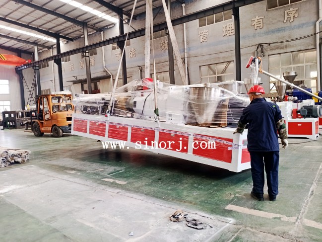 大理石板設備墻板設備裝柜進行中,扣板生產(chǎn)線試機進行時