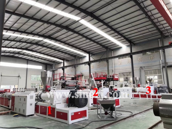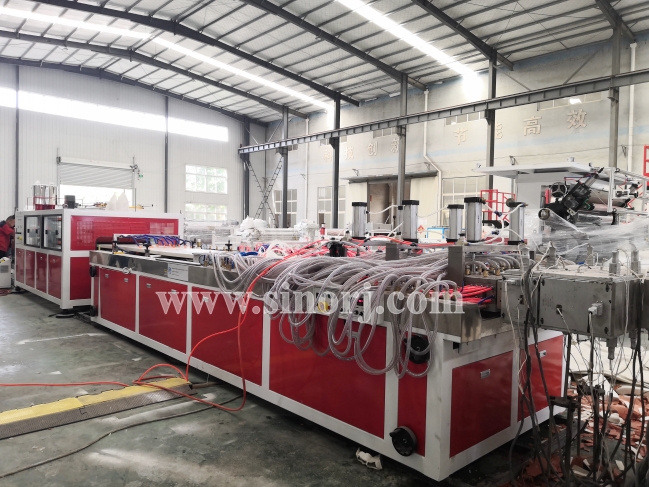 等待發(fā)貨的三套設(shè)備:PVC木塑中空門(mén)板設(shè)備,仿大理石設(shè)備,SPC地板設(shè)備。