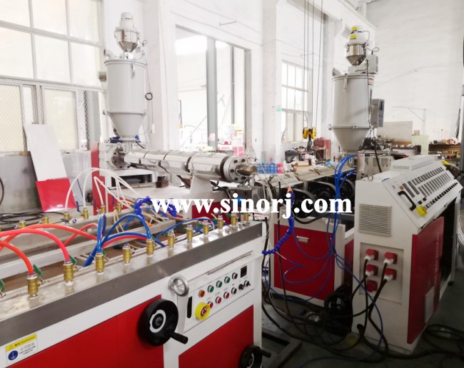 PC共擠型材生產(chǎn)線工廠內(nèi)試機進行中